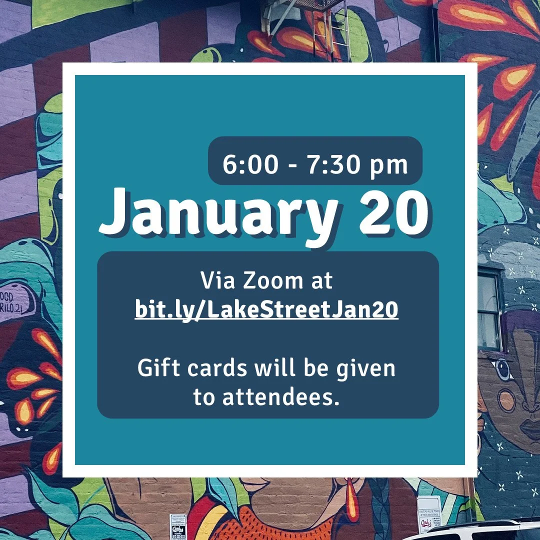 Join us for a virtual Community Shareback Session. We would like to share the visions, stories and ideas that we have hears so far about the future of Lake Street.
